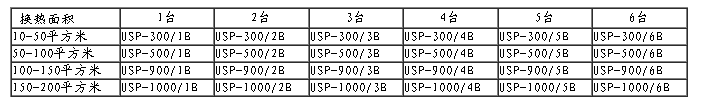 用戶使用單位可根據(jù)本單位在裝板式換熱器的數(shù)量,單臺板式換熱器的換熱面積,在根據(jù)下表,完成設備的選型。