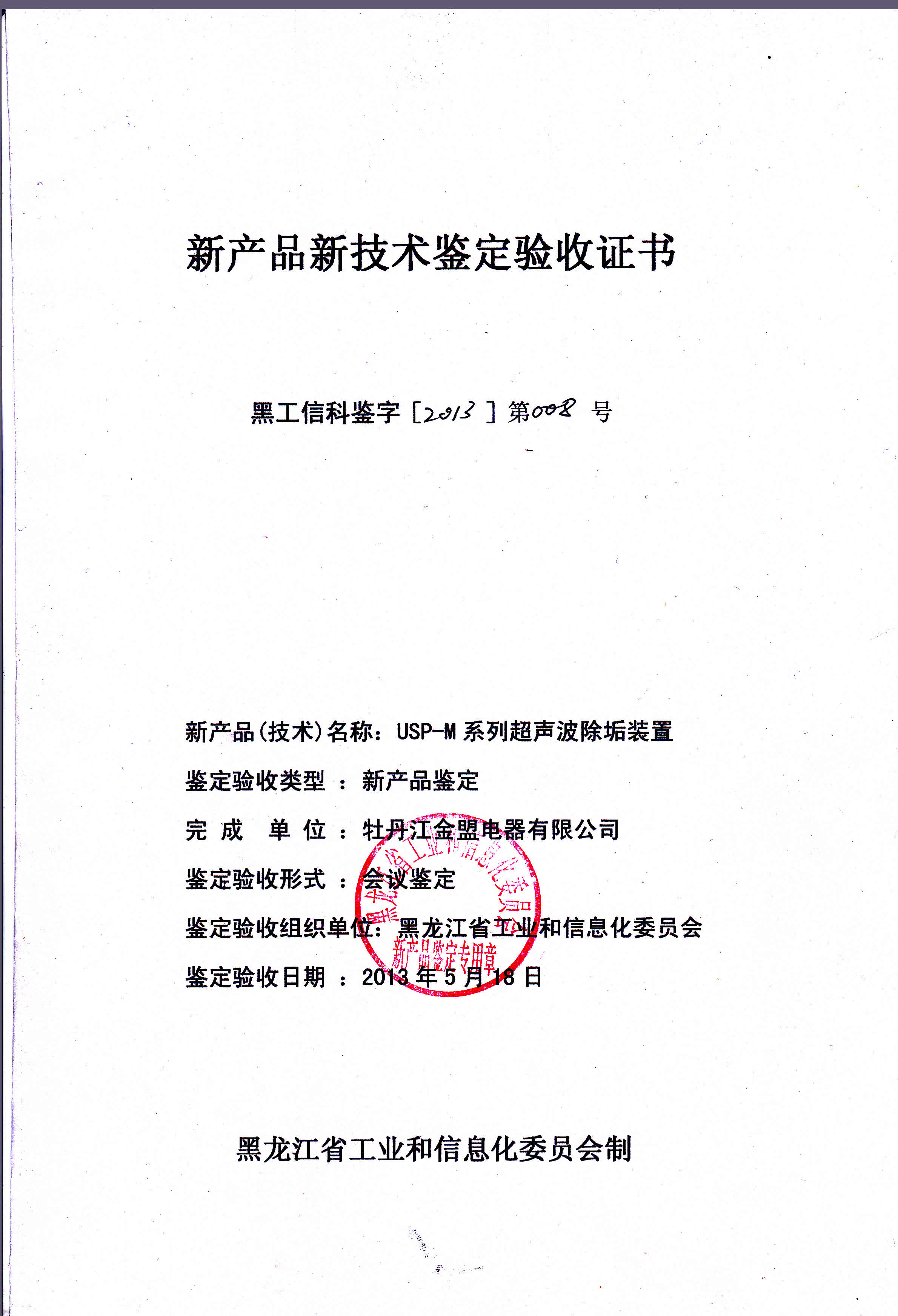 新產品鑒定證書