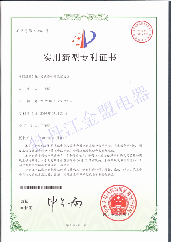 板式換熱器除垢專利證